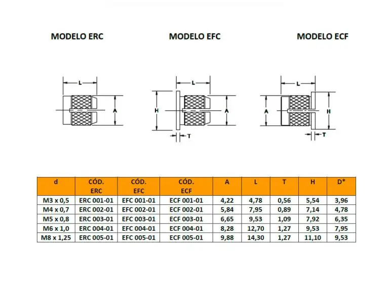 Os insertos Expansivos são usados para reforçar a base plástica na junção de duas partes, evitando desgaste direto da base plástica. Os insertos são usados para receber a fixação de parafusos.